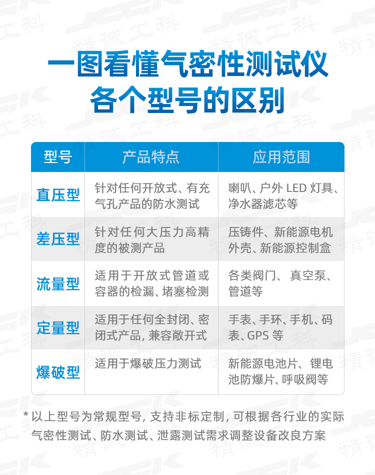 【收藏】一图看懂气密性测试仪各型号的区别